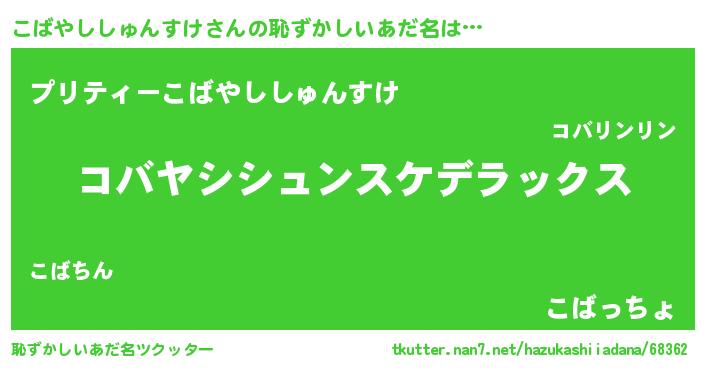 | 男性向けラノベタイトル風あだ名 | 『Re:こばやししゅんすけから始める異世界生活』 |