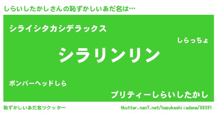| 意味不明あだ名 | 『とにかく怪しいしらいしたかし』 |