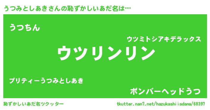 | 欧米人風あだ名 | 『ウサインうつみとしあき』 |