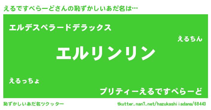 | 意味不明あだ名 | 『とにかく怪しいえるですぺらーど』 |