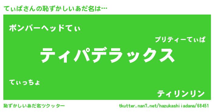 | 男性向けラノベタイトル風あだ名 | 『魔法科高校のてぃぱ』 |