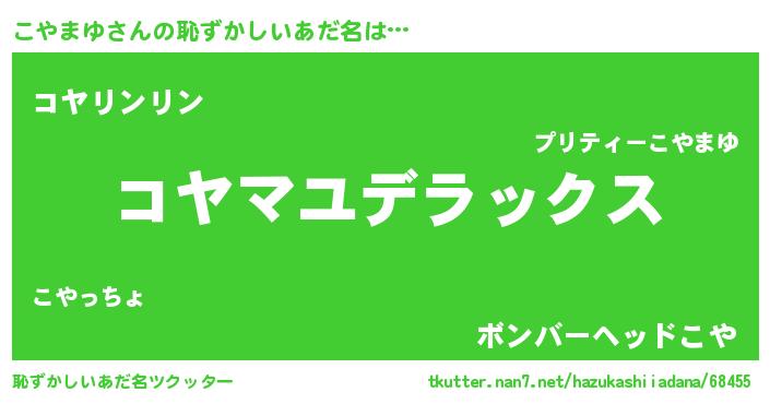 | 意味不明あだ名 | 『自称こやまゆ』『ペロリンこやまゆ』 |