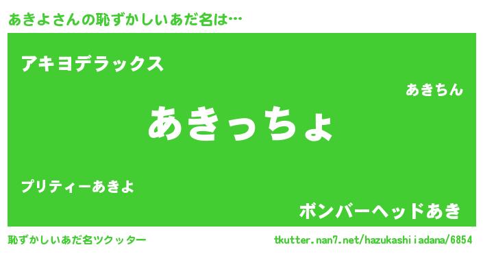 | 意味不明あだ名 | 『あきよフォーエバー』『自称あきよ』 |