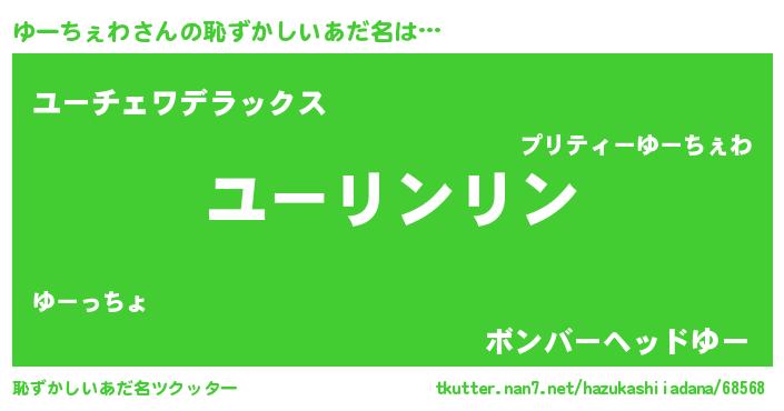 | 女子向けラノベタイトル風あだ名 | 『ゆーちぇわの卵を拾いまして』 |