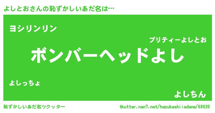 | 欧米人風あだ名 | 『ダニエルよしとお』『ウサインよしとお』 |