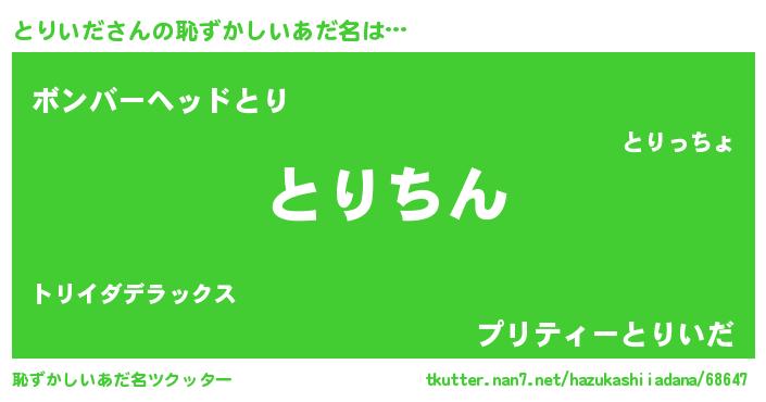 | 胡散臭い通販商品みたいなあだ名 | 『絶対に幸福をもたらす健康食品…その名も「とりいだ」』 |