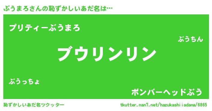 | ヒーロー風カッコイイあだ名 | 『炎刃騎士ブウ』『スーパーブウマロ』 |