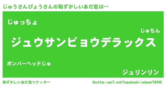 | 意味不明あだ名 | 『自称じゅうさんびょう』 |