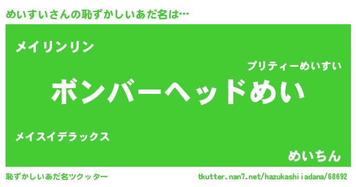 | ヘコむあだ名 | 『めいっ子』『めいすい(爆)』『牛乳』 |