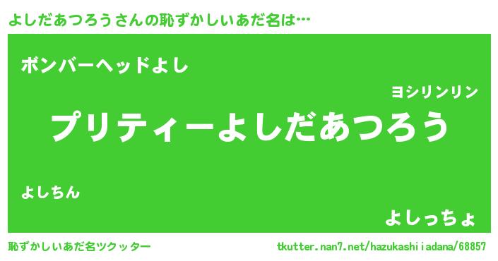 | 男性向けラノベタイトル風あだ名 | 『よしだあつろうの憂鬱』 |