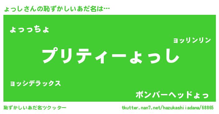 | ポケモン風あだ名 | 『ョッチュウ』『ョッシダネ』 |