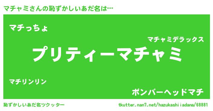 | 男性向けラノベタイトル風あだ名 | 『マチャミの憂鬱』 |