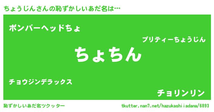 | ヘコむあだ名 | 『ちょうじん(笑)』『ちょお』『豆乳』 |