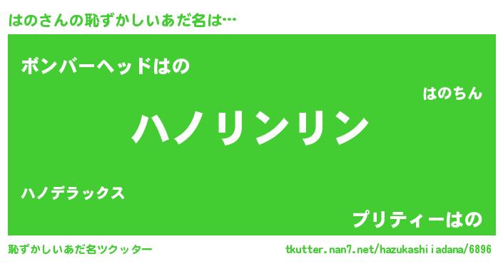 | 女子向けラノベタイトル風あだ名 | 『はのの卵を拾いまして』『はの恋絵巻』 |
