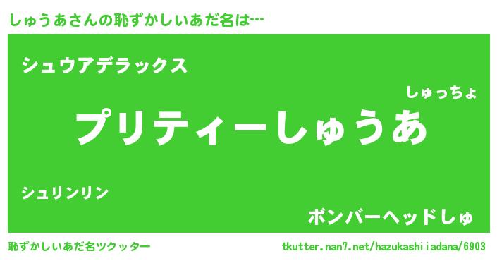 | 意味不明あだ名 | 『ペロリンしゅうあ』『自称しゅうあ』 |