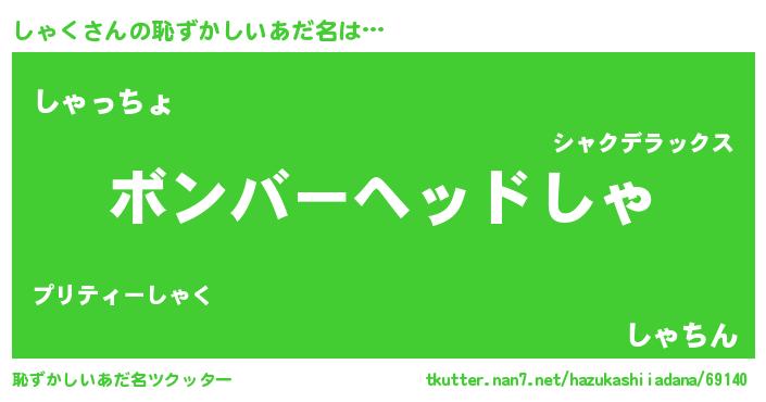| 男性向けラノベタイトル風あだ名 | 『転生したらしゃくだった件』 |