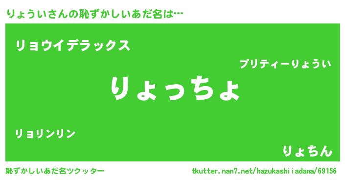 | ヒーロー風カッコイイあだ名 | 『仮面リョダー』『ウルトラりょういマン』 |