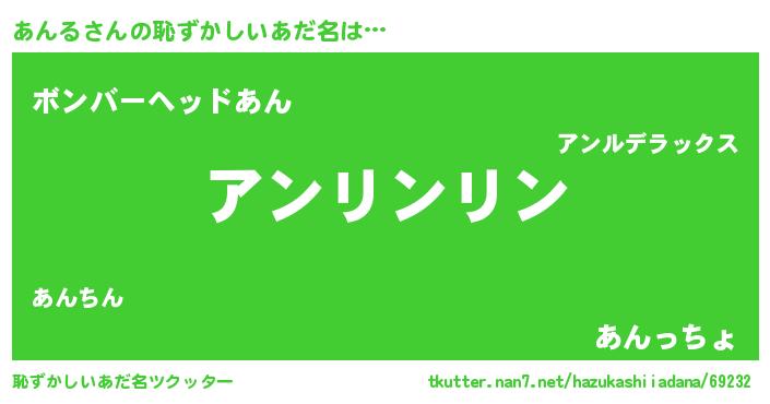 | ヘコむあだ名 | 『あんっ子』『つくし』『あんる(笑)』 |