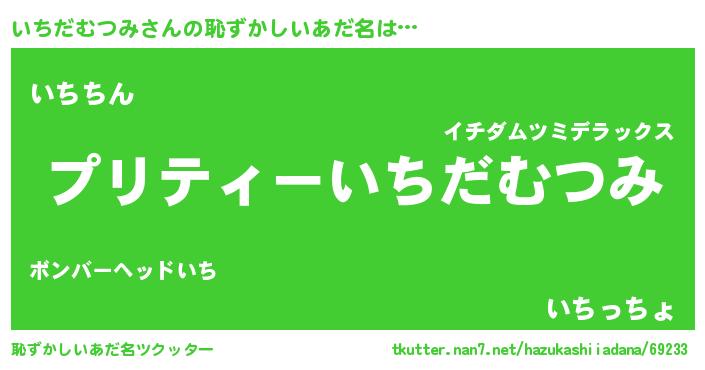 | ヒーロー風カッコイイあだ名 | 『スーパーイチダムツミ』『仮面イチダー』 |