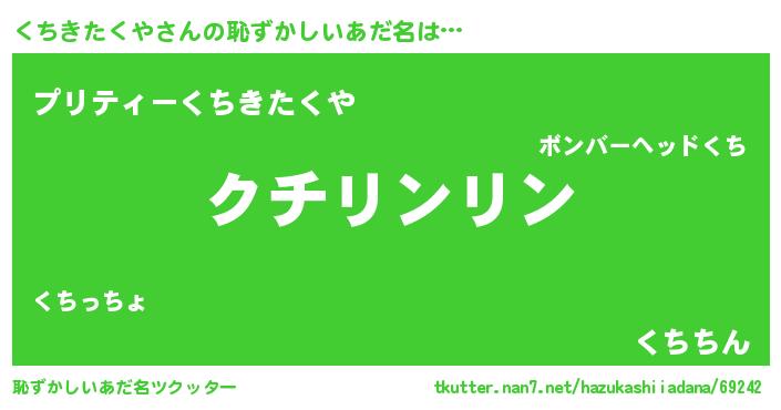 | 意味不明あだ名 | 『住所不定無職くちきたくや(68歳)』 |