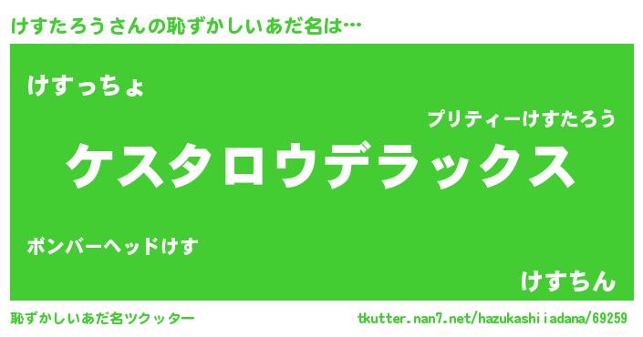 | 意味不明あだ名 | 『自称けすたろう』『永久保存けすたろう』 |