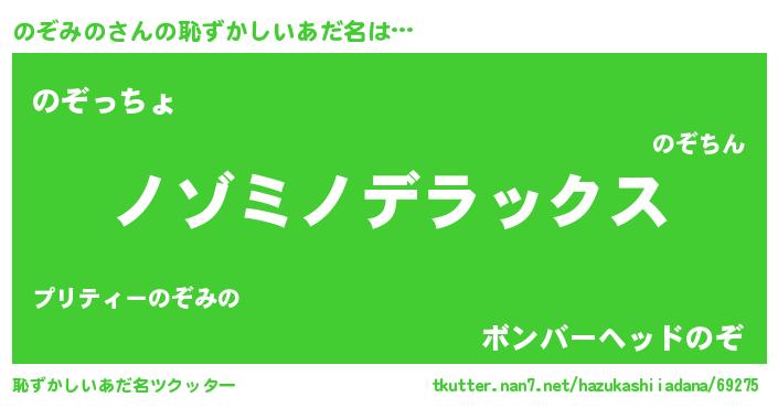 | ヘコむあだ名 | 『酢こんぶ』『のぞみの(苦笑)』 |