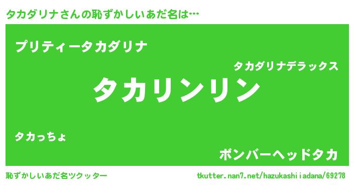 | 男性向けラノベタイトル風あだ名 | 『タカダリナの嫁は女の子じゃないと思った?』 |