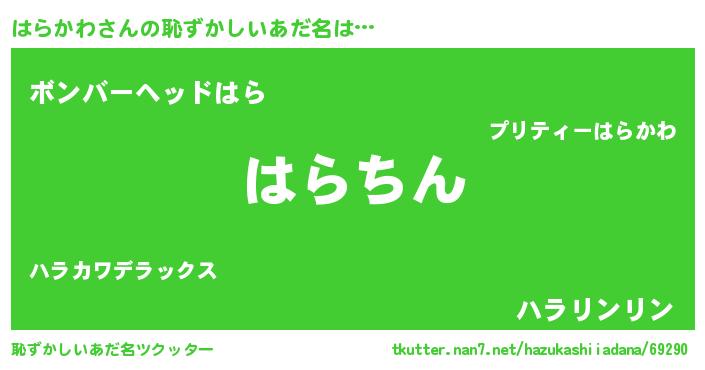 | ヘコむあだ名 | 『はらかわ(笑)』『はらっちょ』 |
