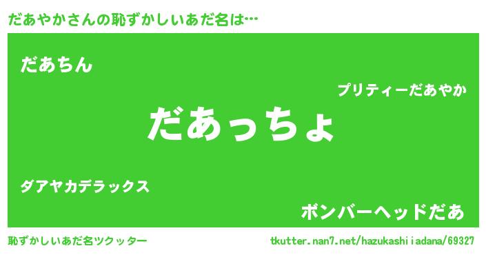 | ヘコむあだ名 | 『豆乳』『だあやか(笑)』『だあにー』 |