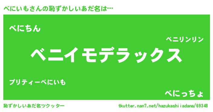 | 女子向けラノベタイトル風あだ名 | 『べにいもアンティーク』 |