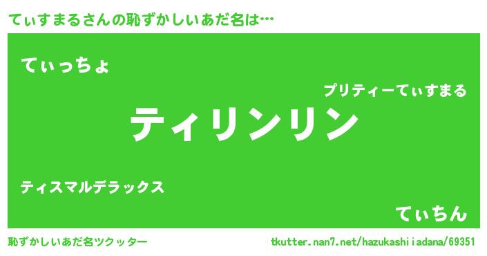 | 意味不明あだ名 | 『とにかく怪しいてぃすまる』 |