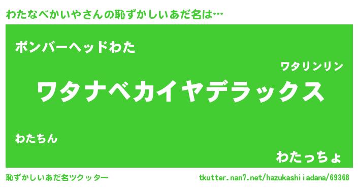 | 男性向けラノベタイトル風あだ名 | 『Re:わたなべかいやから始める異世界生活』 |