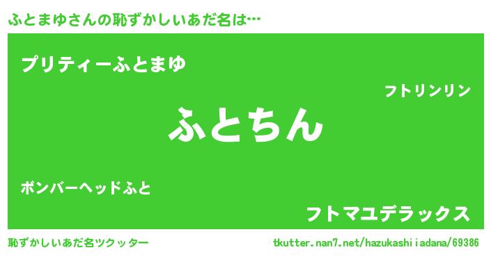 | ヒーロー風カッコイイあだ名 | 『ネオフトマユ』『仮面フトダー』 |