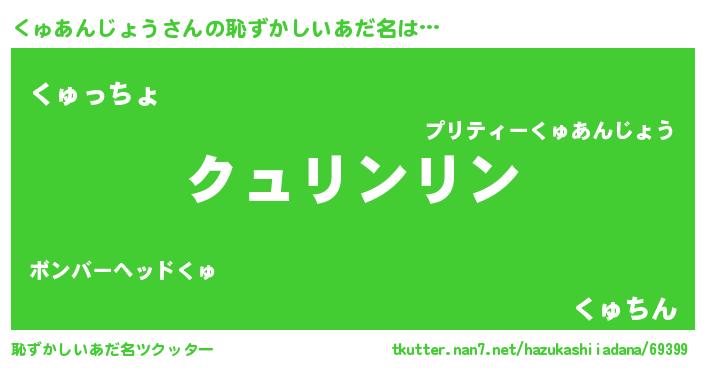 | 意味不明あだ名 | 『とにかく怪しいくゅあんじょう』 |