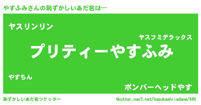 | ファンタジー風あだ名 | 『ヤスフェル』『ユリヤスヴァット』 |