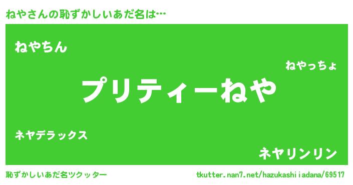 | ヘコむあだ名 | 『ねやもー』『ねや(苦笑)』 |