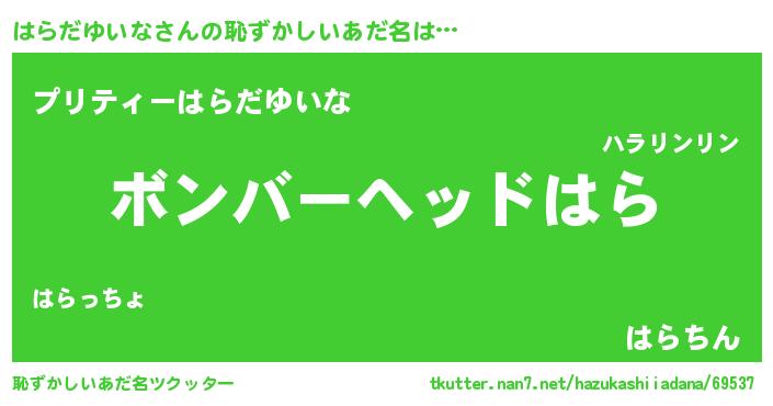 | ヘコむあだ名 | 『はらにー』『はらだゆいな(震え声)』 |