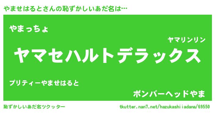 | 男性向けラノベタイトル風あだ名 | 『Re:やませはるとから始める異世界生活』 |