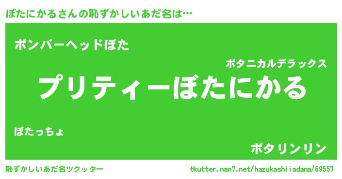 | 意味不明あだ名 | 『住所不定無職ぼたにかる(81歳)』 |