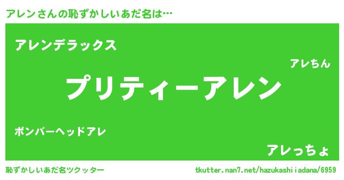 | 意味不明あだ名 | 『ペロリンアレン』『自称アレン』 |