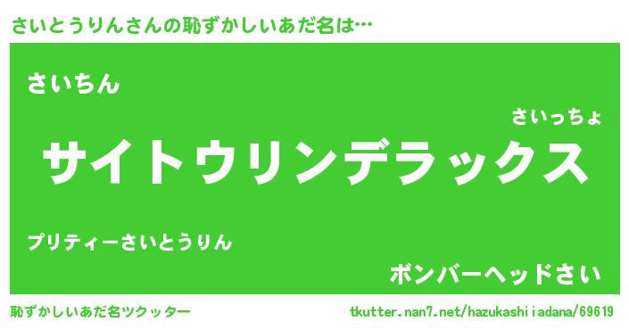 | 意味不明あだ名 | 『自称さいとうりん』 |