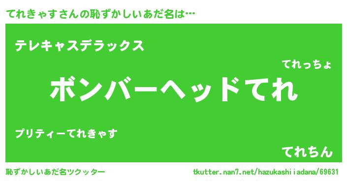 | ヘコむあだ名 | 『てれきゃす(笑)』『牛乳』『てれを』 |