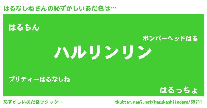 | 意味不明あだ名 | 『とにかく怪しいはるなしね』 |