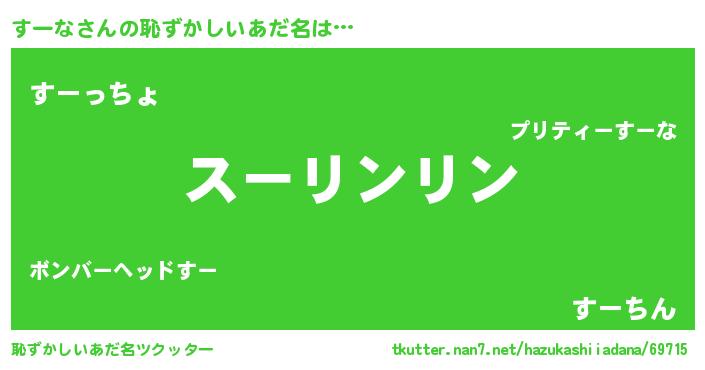 | ヘコむあだ名 | 『すーお』『つくし』『すーな(苦笑)』 |