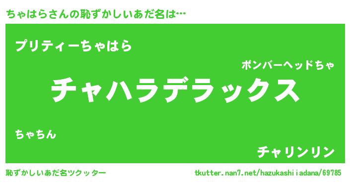 | 意味不明あだ名 | 『自称ちゃはら』『ペロリンちゃはら』 |