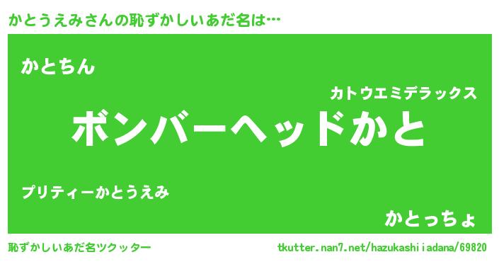 | ヒーロー風カッコイイあだ名 | 『愛の使者かとうえみ』『ネオカトウエミ』 |