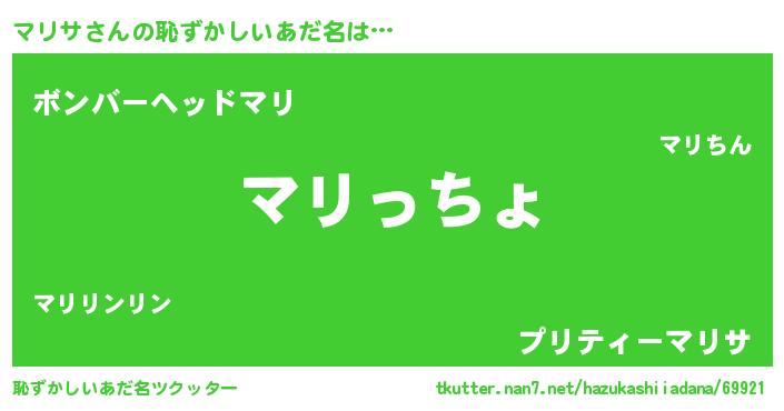 | ヒーロー風カッコイイあだ名 | 『ウルトラマリサマン』『愛の使者マリサ』 |