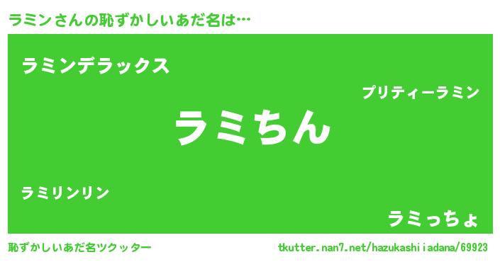 | ポケモン風あだ名 | 『ラーミイ』『ゼニラミ』『ラミゴンZ』 |