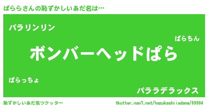 | ヘコむあだ名 | 『ぱらぷりん』『ぱらら(苦笑)』 |