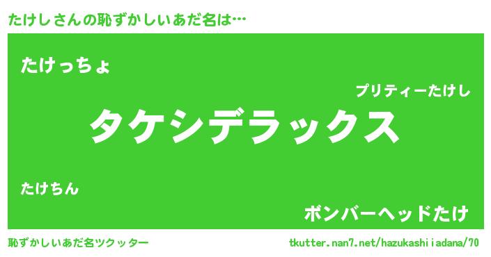| ヒーロー風カッコイイあだ名 | 『サイバー戦士タケシ』『仮面タケダー』 |